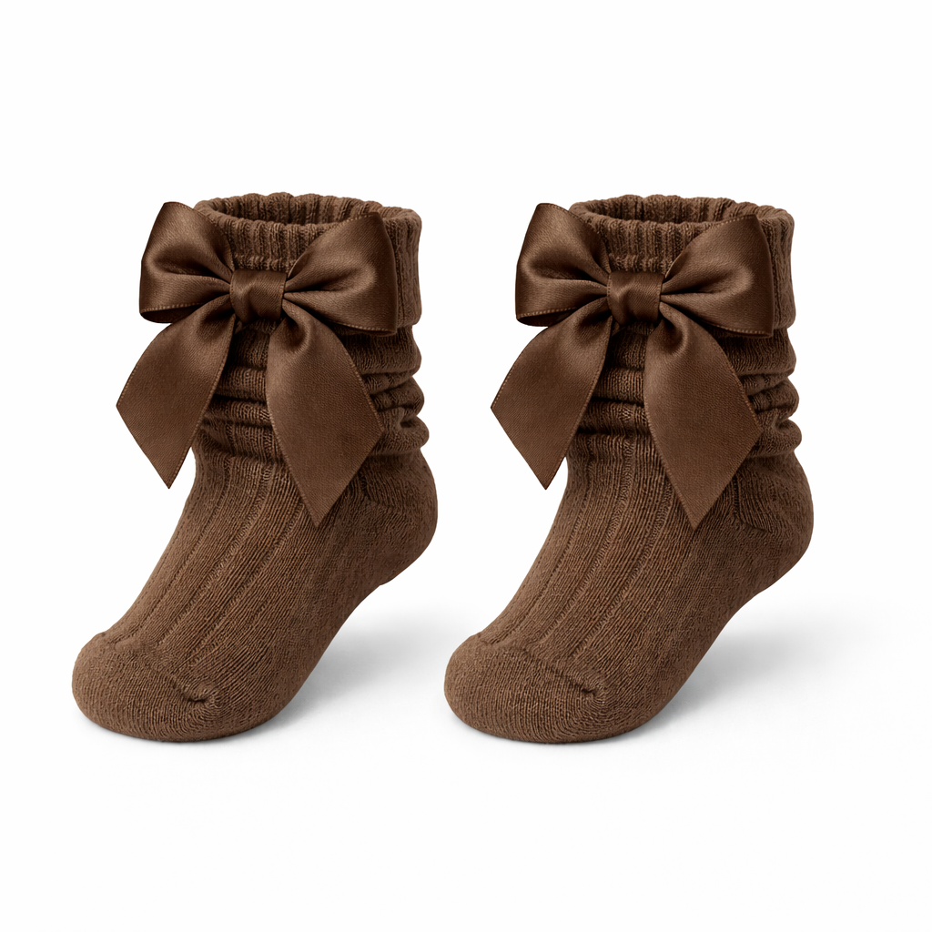 Hoge sokjes met strik Bruin